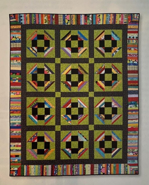 On March 21st we’ll show the blocks we’ve made, discuss my method for adding sashing between the blocks, and work on foundation piecing the border.